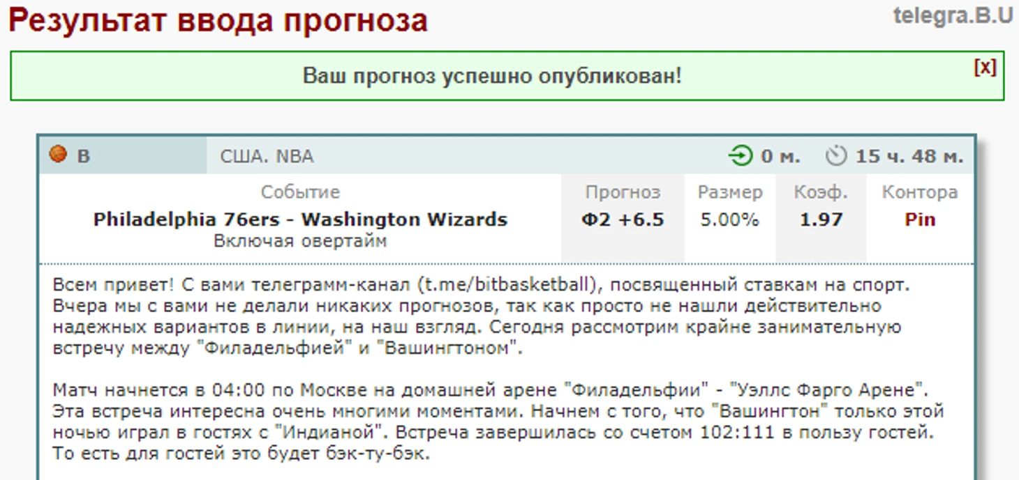 Не забывайте подписываться на наш телеграмм-канал с прогнозами: t.me/bitbasketball . Там много всего интересного. Удачи!