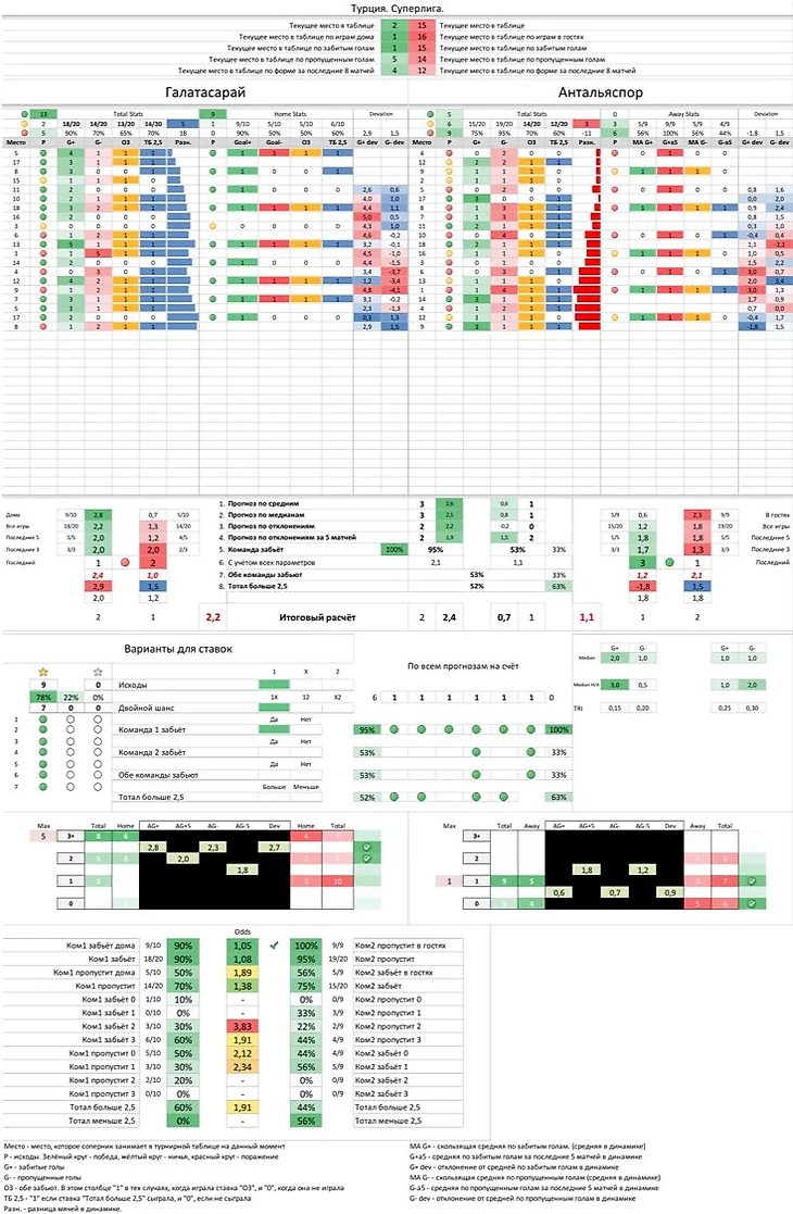 3.Турция. А вот тут я бы посмотрел в файл несколько раз. Внимательно. Потом еще раз. Ребята, не вижу смысла много здесь обсуждать. Галатасарай очень хорош дома. В этом сезоне они лишь раз теряли дома очки. Считаю, что вариант на победу хозяев через фору -1 также не плох для пресса.