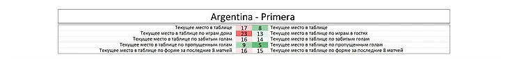 Красный индикатор напротив этих показателей говорит о том, что не выполняется второе условие для отклонений. К моменту следующей игры у команды 1 должно быть на 1 домашний матч меньше, чем выездных. А у второй команды наоборот: гостевых меньше, чем домашних.