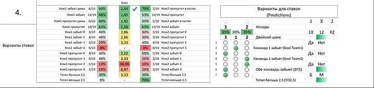 В правой части цветом подсвечиваются наиболее подходящие варианты для ставок. Для того, чтобы подсветилась ячейка, должно сойтись сразу несколько критериев.