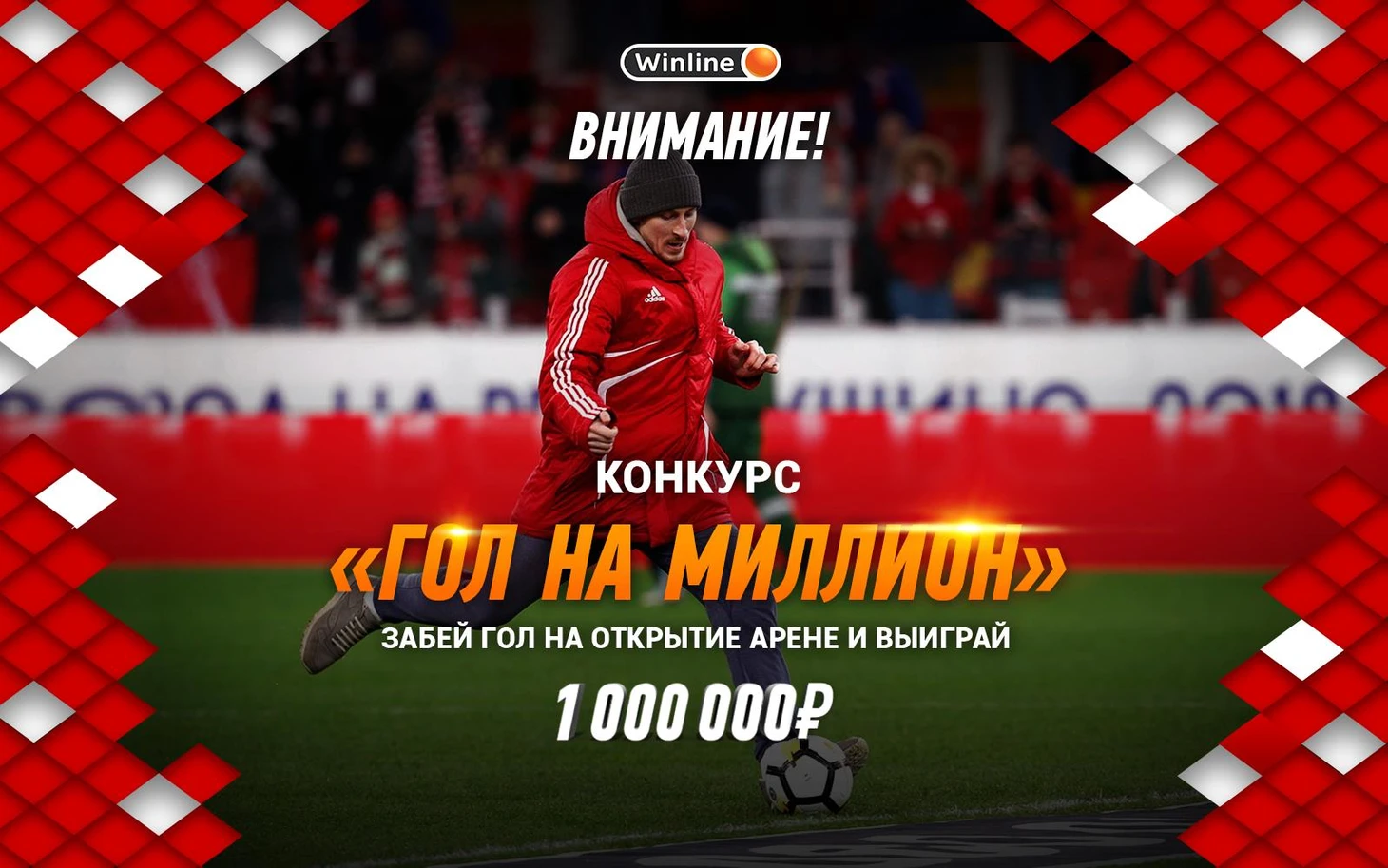 Букмекер Winline дает шанс каждому выиграть миллион рублей. Участвуй в конкурсе «Гол на миллион», выйди на поле «Открытие Арена» в перерыве матча «Спартака», выбери точку для удара и попади в ворота. Это простые условия, чтобы оказаться миллионером.