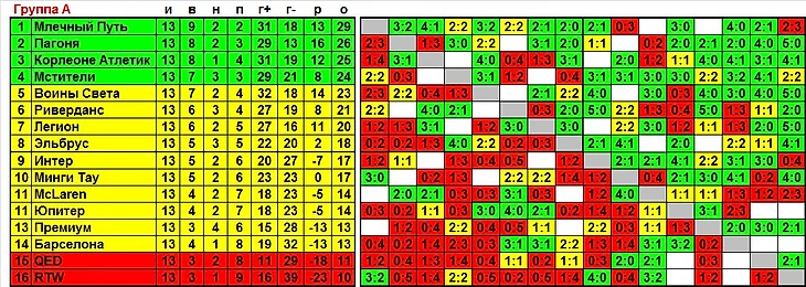 Кроме того, в шахматках отдельным прямоугольничком выделены результаты, которые идут в зачёт финала НА ДАННЫЙ МОМЕНТ (разумеется, корректировка еще будет, но те матчи, которые провели между собой «зелёные» команды, абсолютно точно зачётные).