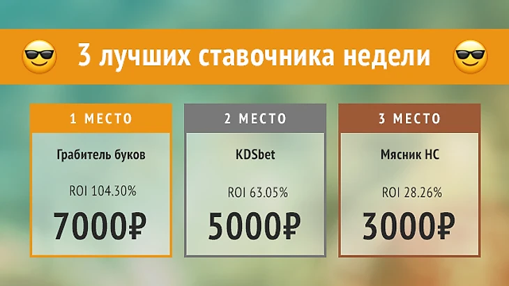 Всем привет! Betting Insider подводит итоги уходящей недели и раздает призы. Напомним, три лучших игрока недели получают фрибеты от БК «Марафон».