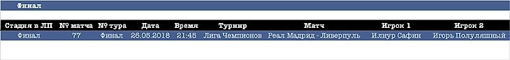 Финал Лиги Подставок пройдет 26 мая и совпадет с финалом Лиги Чемпионов сезона 2017/18. Это будет игра между Реалом и Ливерпулем.