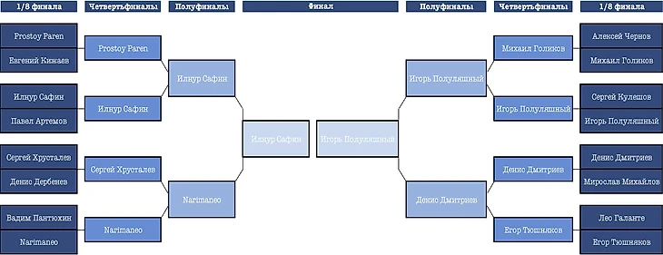 Игорь Полуляшный (ТБ+ОЗ) 2,75 - Денис Дмитриев (ИТБ2 1,0) 1,95.