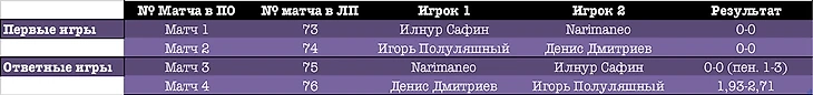 Самая сильная пара недели: Денис Дмитриев против Игоря Полуляшного. Ребята выдали нереально крутой матч, в чем им поспособствовали Лацио и Интер. Оба варианта проходят, а ребята точно могут занести этот матч себе в актив, как один из лучших матчей плей-офф.
