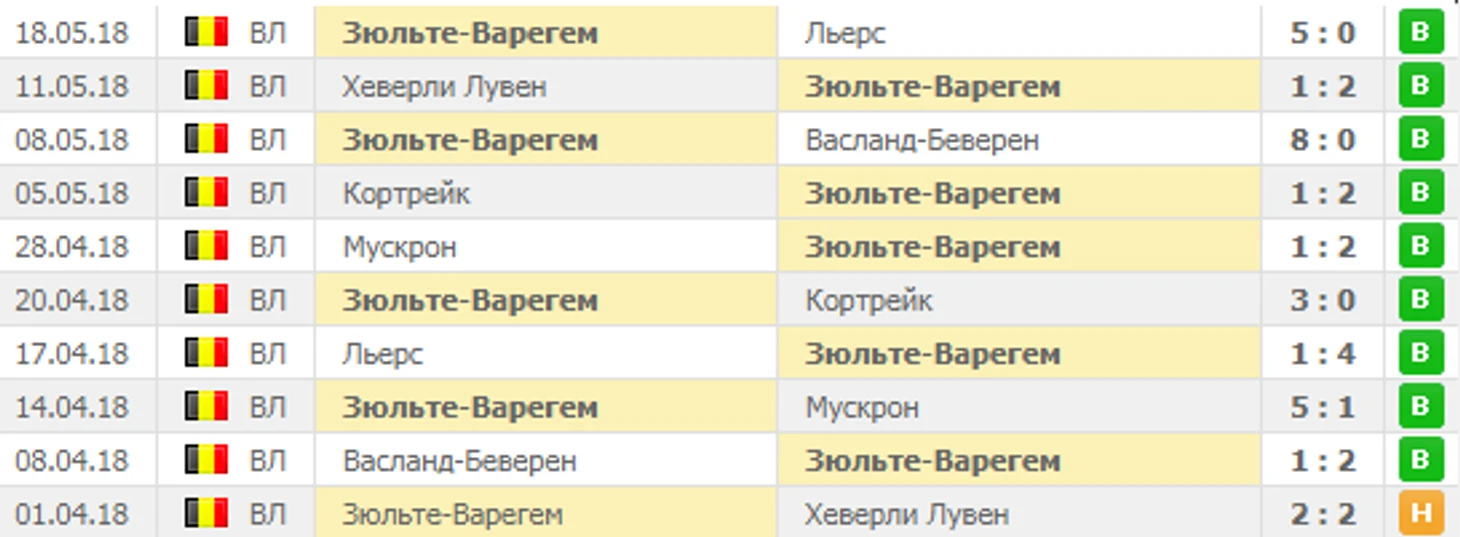В последнее время команда просто доминирует над своими оппонентами, превосходя их в большинстве компонентов и относительно легко добивается результата. Конечно, группа у них была послабее, чем у Локерена, но тем не менее это не умаляет заслуг подопечных Francky Dury. Тот же Кортрейк отнюдь не слабый по бельгийским меркам соперник, но и он ничего не смог противопоставить Варегему в очных встречах.