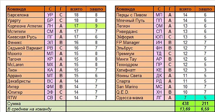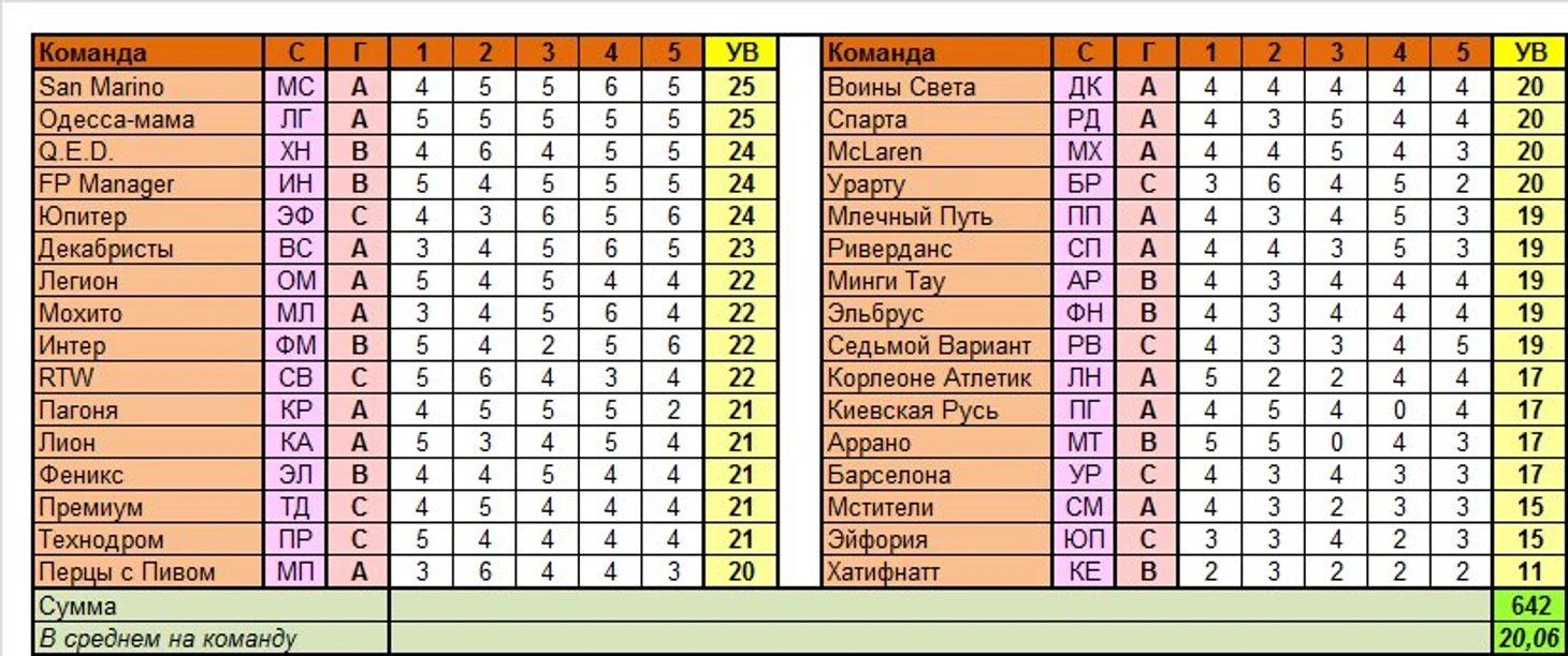 Лучшие команды тура по сумме УВ в целом: SanMarino, Одесса-мама (по 25 вариантов)