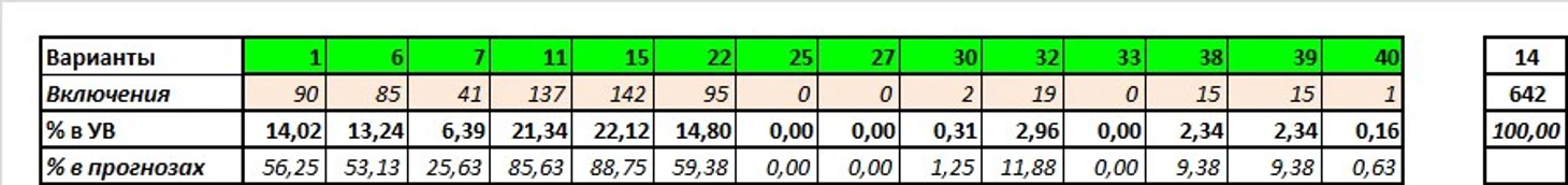 Сумма угаданных вариантов: 642 из 140 (57,32%)
