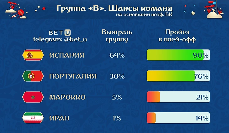 Серия выпусков к ЧМ-2018, посвященная шансам сборных на победы в своих группах и проход в плей-офф. Новый день – новый выпуск! Сегодня – группа «B» с Португалией, Ираном, Марокко и Испанией.