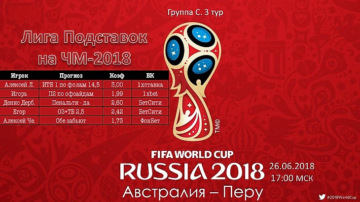 Ниже варианты ставок наших участников матч чемпионата мира по футболу - 2018: Австралия - Перу.