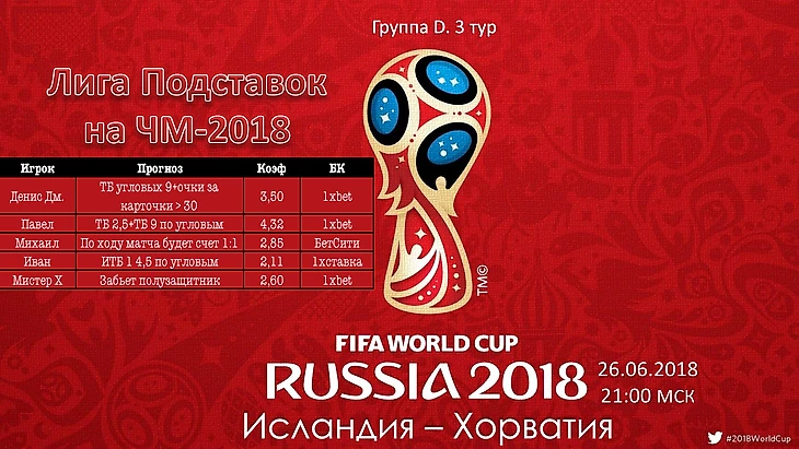 Ниже варианты ставок наших участников матч чемпионата мира по футболу - 2018: Исландия - Хорватия.