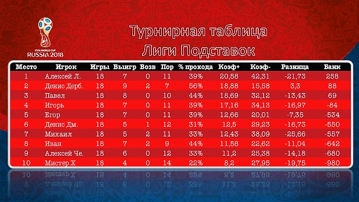 Лига Подставок на ЧМ-2018. 13-ый игровой день