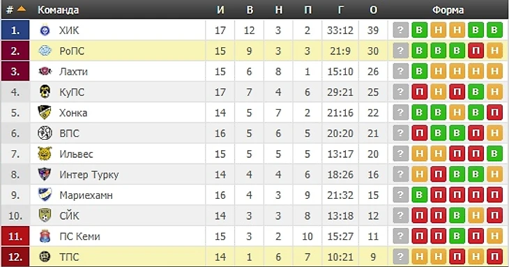 Футбол. Чемпионат Финляндии.