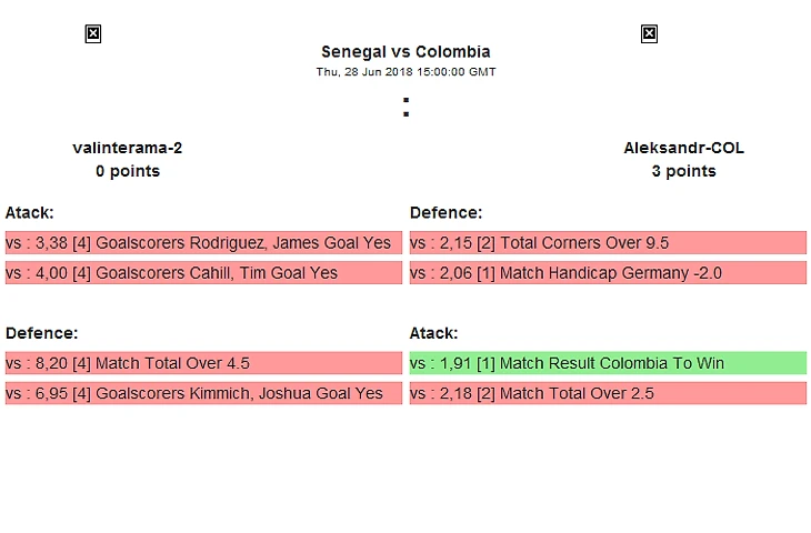 А знаете у кого 1-е место по балансу? У Shon-11 из Мексики(+671). А знаете в чем прикол? Его второй аккаунт из Перу вышел из группы С со второго места с 1-й победой, двумя поражениями и балансом в -777!!!! Да, Shon, похоже я знаю, кого вероятнее всего выберет Ervand в оппоненты на 1/8 финала.. Он же не играл с тобой в РФПЛ и не знает на что ты способен )) Ну, а Shon, который в сомбреро еще может и не выйти из группы, ибо их встреча со скандинавом Респектом проходит ОЧЕНЬ напряженно. В 1-м тайме обе команды показали отличное мастерство в атаке и в защите, было очень много острых и рискованных моментов, но нули остались на табло. А вот во втором тайме атака Шона сыграла очень хорошо, нанеся два опаснейших удара, но на защиту сил не хватило и уже совсем скоро мы узнаем, как сыграет защита Респекта и его агрессивное нападение. В этом матче может быть счет 2-0, 2-3 0-3 (забавно, да? Если шведы выиграют у Мекксики 0-3… где-то уже такое было…) или даже 0-0. Победа Шона или ничья выведут его в 1/8 финала, и лично я болею за него! Но за Респекта и за обилие мячей в 1-м тайме матча Сенегал-Колумбия точно болеет Арт-Урал, так как при поражении Шона, три ничьи, в отличие от Джека, выведут его в дальнейший этап турнира.