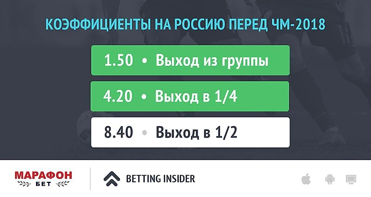 Победа России на ЧМ-2018 три недели назад шла за 40.00 — сегодня коэффициент ровно в два раза ниже