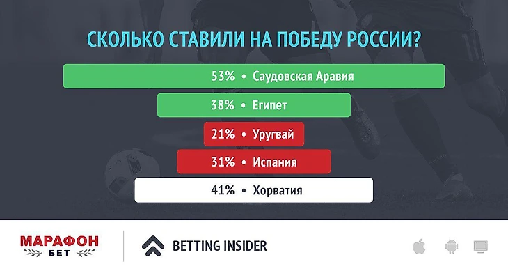 41% пользователей Betting Insider ставят на победу России в матче с Хорватией