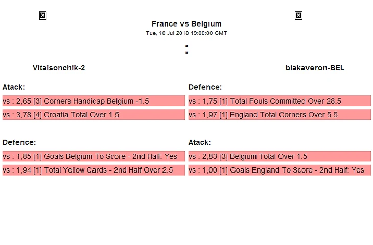 2. DEF. Бельгия забьет во втором тайме - ДА. Если честно, на этом турнире атака бельгийцев мне нравится больше всех. Лукаку - это вообще монстр, когда он разгоняется, мне кажется, что даже конь его не обгонит. Все мы хотим от этих двух сборных увидеть красивый открытый футбол, но как они на самом деле сыграют на 100% не спрогнозируешь, ибо как французы могут катать на удержание, как это было с Перу, Данией, да и с тем же Уругваем, так и Бельгия может первый тайм настраиваться на игру. А вот во втором тайме (об этом и статистика тоже говорит) бельгийцы включают обороты, исключение разве что игра с Бразилией, когда они видимо неожиданно для себя к концу 1-го тайма вели уже 2-0 и весь 2-й тайм отбивались, но тут, я думаю, Франция им такого не позволит.