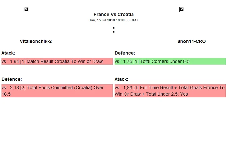 Ирония судьбы, а без нее как мы видим никуда в этом турнире, в том что противостоит ему его друг, Shon11, которого он же притащил в мои турниры, что будет чувствовать Виталь если проиграет ? Будет ли себя чувствовать удобно Shon11 если вырвет титул у своего друга что очень давно заслуживает выиграть ? Да и често технически, Shon11 с первых дней участия в турнирах показал себя очень крепким, высокоприбыльным капером, в этом турнире он очень похож на сборную Хорватии, за которую и играет в финале, или бомбит своего опонента или выигрывает несмотря на неудачную игры, он свой путь в финал выгрыз и если победит, вопреки всем прогнозам, покажет пример всем остальным, кто ставит хорошо, но не выигрывает, придет твой день и ты станешь чемпионом. В том числе и Виталю покажет ))))