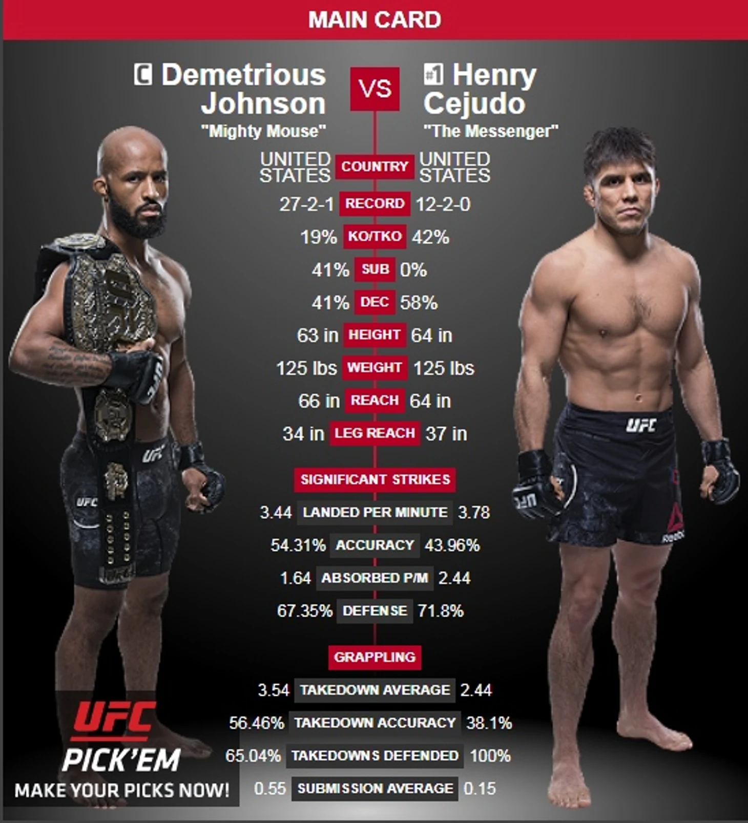 Demetrious Johnson vs Henry CejudoМогучий Мышонок против Олимпийского чемпиона. Реванш с очевидным исходом.