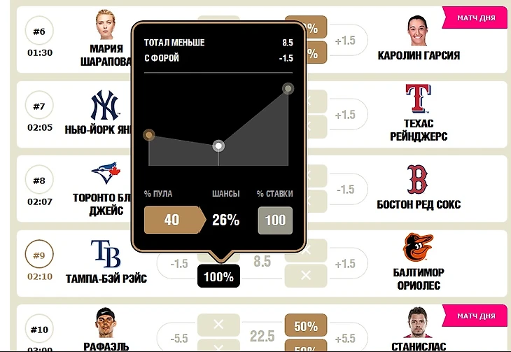 Такие ночные тиражи - неплохой шанс на выигрыш для разбирающихся в нетипичных для тотализаторов с большим джекпотом видах спорта.Например, вот непрофильный бейсбол, где предугадать результат очень сложно. Шансы на выигрыш отображаются при постановке комбинации.