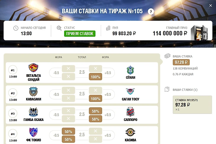 За 100 рублей в традиционной тотошке (1, Х, 2) можно закрыть один дополнительный вариант; в ТОТО-15 при минимальном множителе - 6.