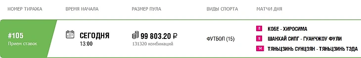 В традиционных тотошках редко дают дневные матчи, а в ТОТО-15 сегодня - 15 августа - целый ряд игр в рамках китайской и японской лиг. В том же Бетсити джекпот в тото растет медленно. Пул так же после снятия джека не очень впечатляет.