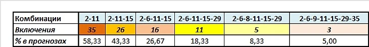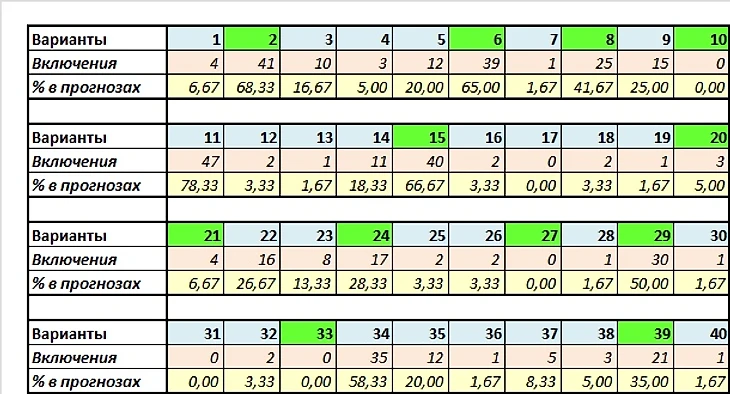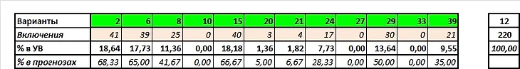 А наибольшую сумму УВ выдали Премиум и Чекудра. Олега Щёголева поддержали партнёры, двое выбили по 5, трое, так же, как и сильнейший игрок команды, победили на линиях. 4:1, и Премиум оставляет Сорренто за бортом. Чекудра же защитила своё первое место группы В в борьбе со Сталеварами. "Стальные" по УВ тоже сыграли солидно, разделили 4-5 места, но соперника одолеть не удалось, перебила ЧК по числу взятых "2", "15","39" . Спасти Сталеваров могла ничья в игре Супернова - Мясорубка, но "суперы" нужный для себя выдали сильный матч, крепко загрузили на 2-6-8-15-29, затронули и 21 с 24. "Мясники" ответили парой своих открытых "24" и "39", но этого было мало, 0:4. Разгромами закончились и оба матча группы С, 1514, я упоминал, обыграли Да Силву, а Урарту максимально крупно победили Седьмой Вариант, тем самым косвенно содействовали осуществлению подвигу 1514, поднявшихся на 2-ое место после 2 поражений на старте. "Седьмые" рискнули, выбрав приоритетным исходом малорезультативную по голам ничью, но прогадали. А Урарту верили в Наполи и на всех линиях превзошли соперника. Любопытно, что "горцы" всем составом отбросили вариант "6". Отмечу, кстати, что 3 зашедших варианта попали в список 5, не тронутых прогнозистами.