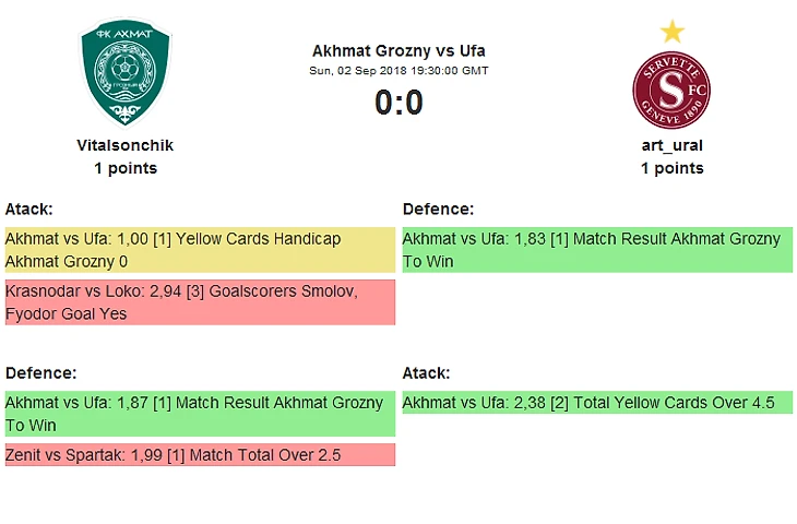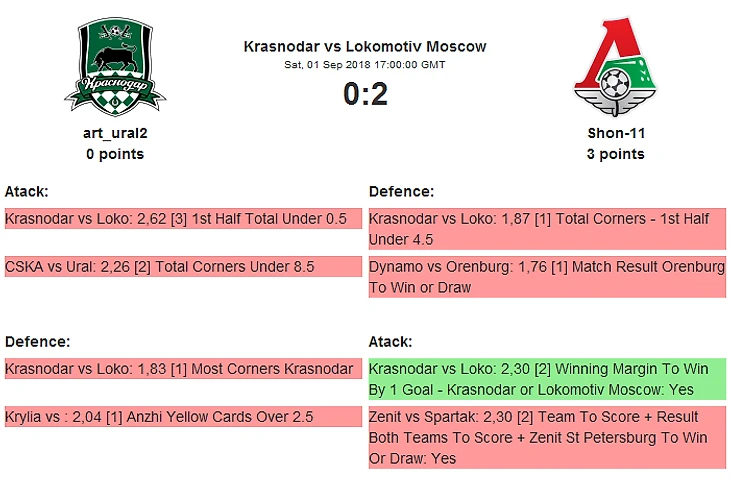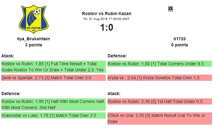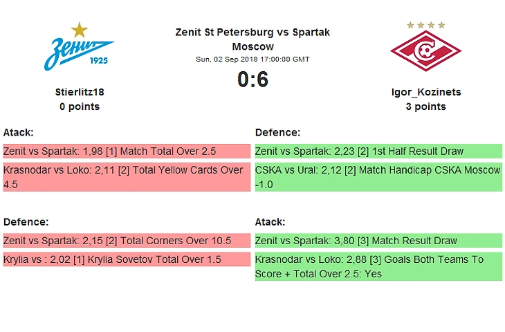 Ну и напоследок, Виталь своим главным акаунтом должен подтвердить свой класс крутого прогнозиста по РПЛ, а то уже пару туров у него не ладится, правда непонятно насколько это позволит ему разжится очками, ведь art_ural тоже похоже приходит в себя и начал заваливать заходы пачками...