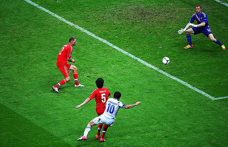 • 8 июня 2012-го, Россия – Чехия – 4:1, в воротах Малафеев. После игры казалось, что команда способна даже на большее, чем в 2008-м; что Дзагоев, сделавший дубль, встретит осень в европейском топ-клубе; что Кержаков поправит удар максимум ко второму туру.