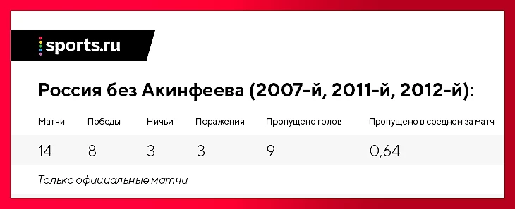 Как ни удивительно, у команды приличная статистика и без Игоря: только Англия и Израиль забили больше одного гола, зато сухих матчей было 8 (больше половины).