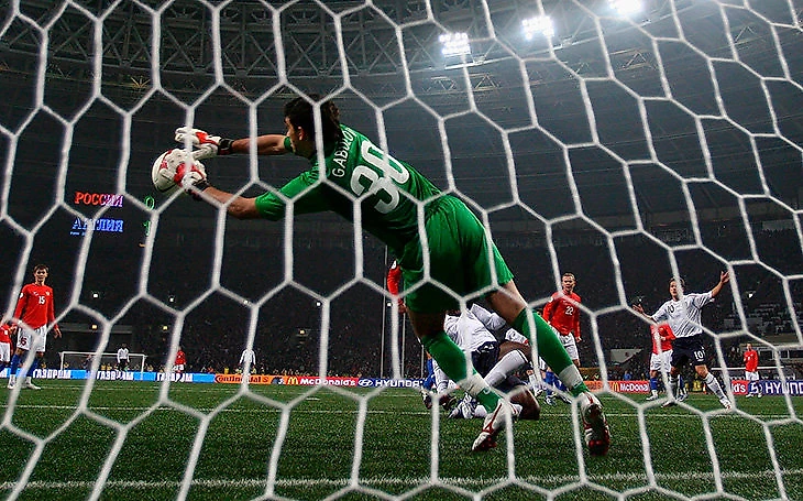 • 17 октября 2007-го, Россия – Англия – 2:1, в воротах Габулов. Вы и так все помните: 80 тысяч в «Лужниках», полотнище с медведем на трибунах, синтетический газон, выстрел Руни и потом его же фол на пенальти, и наконец, бешеная атака России, закончившаяся голом Павлюченко. Ну и знаменитое «теперь все в наших руках, главное – не обосраться бы в Израиле» от Константина Зырянова.