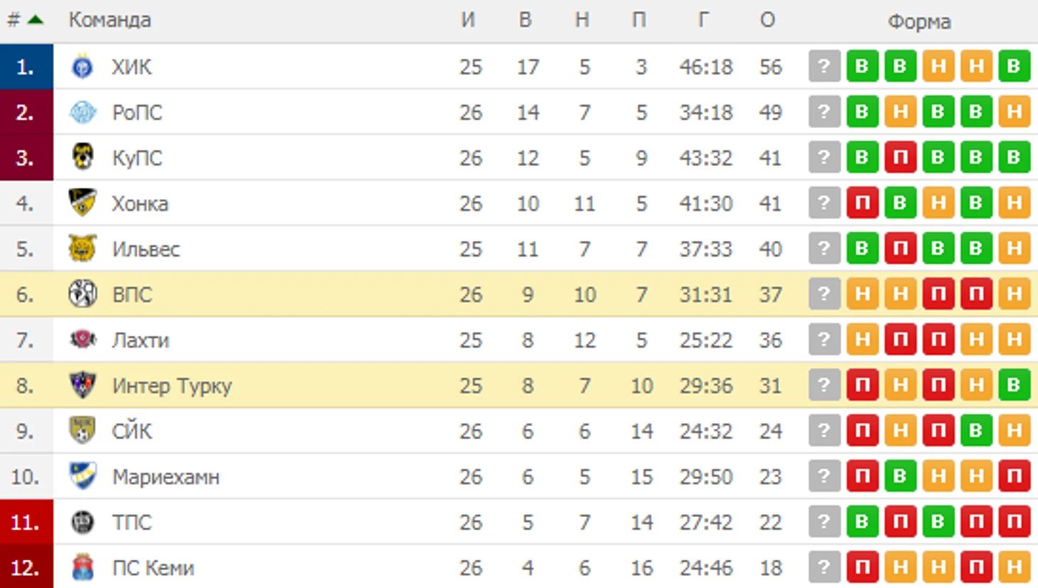 Интер Турку в плохой форме. Вот уже 4 игры команда не знает побед, при этом не может забить уже более 360 минут. В соперниках были команды из ТОП-3, но это не должно являться оправданием абсолютно блеклой игры. Обычно любая крепкая финская команда будучи в здравых кондициях действует против тех же РоПС, КуПС, Лахти поинтереснее. Даже если брать ВПС. На фоне лидеров они смотрелись на порядок достойнее. Поэтому на данном отрезке сезона ВПС банально лучше своего сегодняшнего оппонента со многих точек зрения.