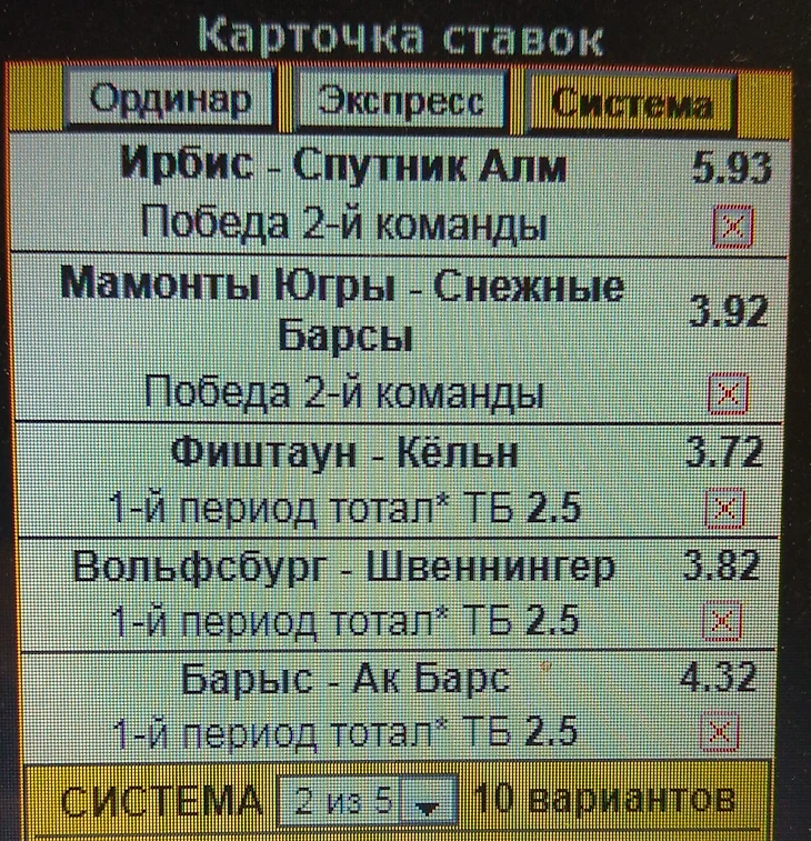 Два первые матча - это молодежная хоккейная лига России. у них там идут спаренные матчи. так вот в субботу спутник не будучи фаворитов разнес Ирбис 5:1. случайно так сыграть нельзя. И опять они дают 5,93 на спутник. берем. У мамонтов и барсов была ничья 3:3 в субботу. По мне так барсы потенциально сильнее. рискну взять их победу в основное время. Из германии выбираю два мачта из семи, где голевая перестрелка в первом периоде выглядит наиболее реальной. То же самое делаю и в чемпионате кхл. Барыс часто весело начинает поединок, ну а Ак Барс всегда опасен! ждем огонька!!!!
