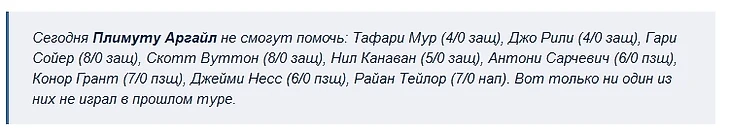 Кроме того у Плимута сегодня будут серьезные проблемы с составом