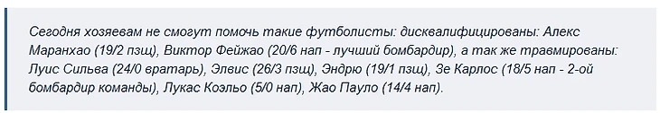 Тем более Бразил де Пелотас надо набирать как можно больше очков, чтобы оторваться от зоны вылета. В последних 5 выездных матчах они только 1 раз проиграли. Сложно поверить, что сегодня они проиграют. А по тоталу у меня нет сомнений из-за потерь хозяев и потому предлагаю сыграть Х2+ТМ.