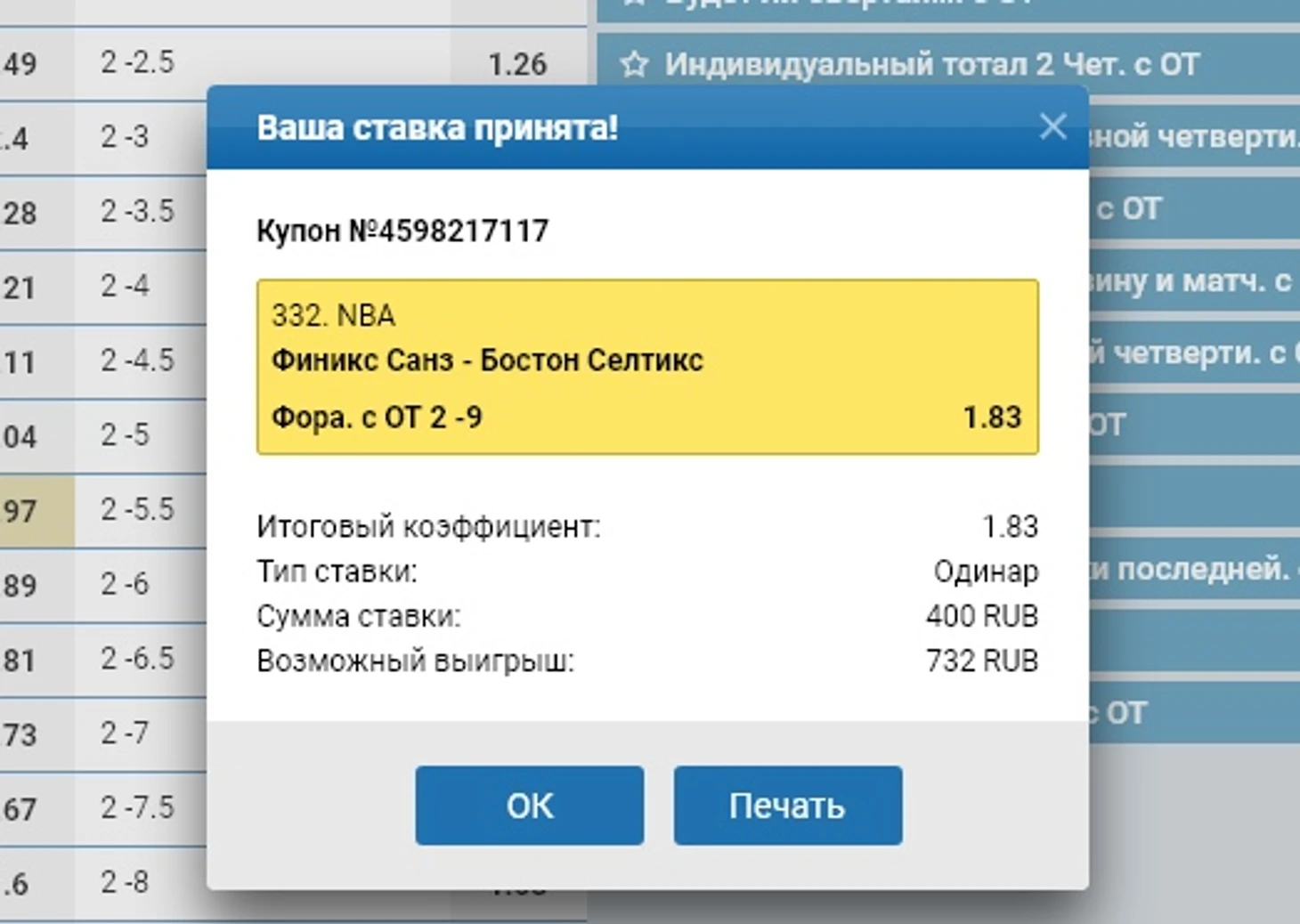 В итоге сделал на неё две ставки, а также одну на НБА.