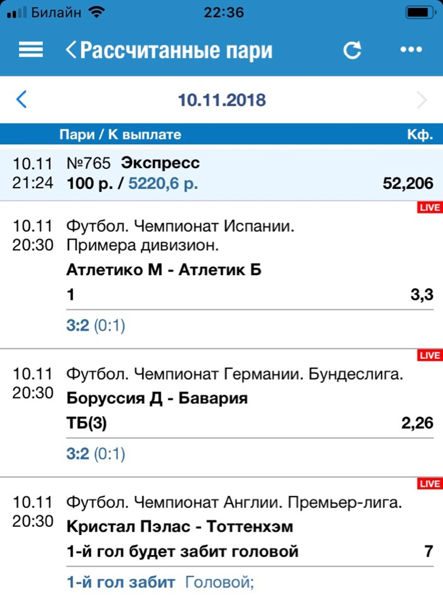 Но во время перерывов матчей "Кристал Пэлас" - "Тоттенхэм", "Боруссия" - "Бавария" и "Атлетико" - "Атлетик" я решил сделать лайв-экспресс.