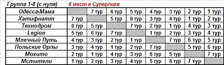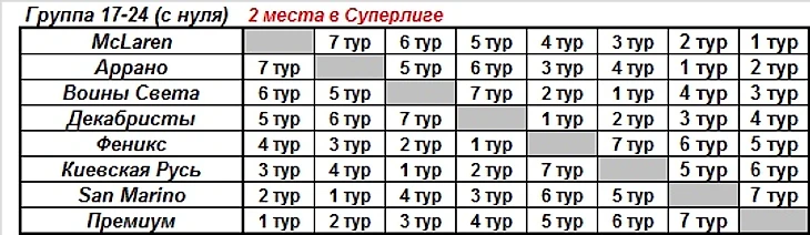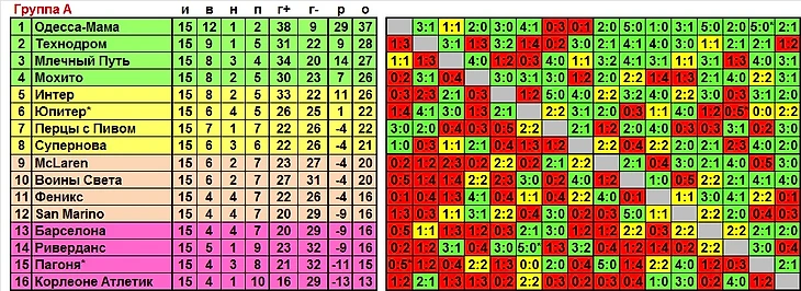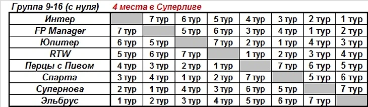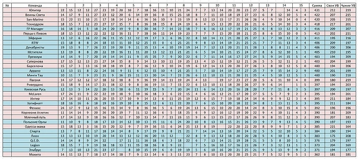 Наглядно же посмотреть, почему выше расположилась та или иная команда, а также изучить, кто насколько успешно играл с соперниками с разных этажей, можно с помощью подготовленных мной шахматок.