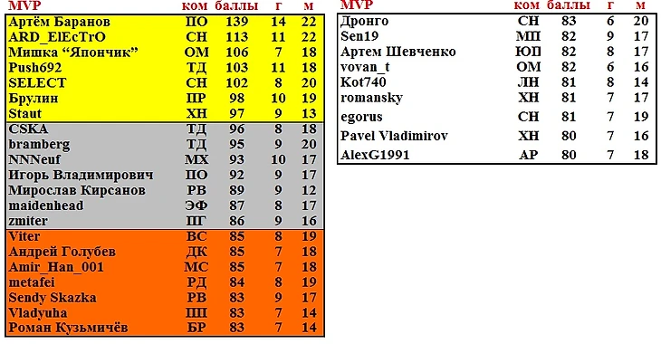 Спасибо Саше sdryapko1 и Bohdan'y Bek'e за помощь в ведении статистики mvp !