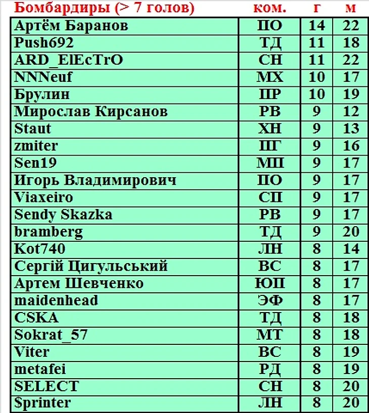 Большое спасибо Косте за труд и занимательные наблюдения по выступлению команд!