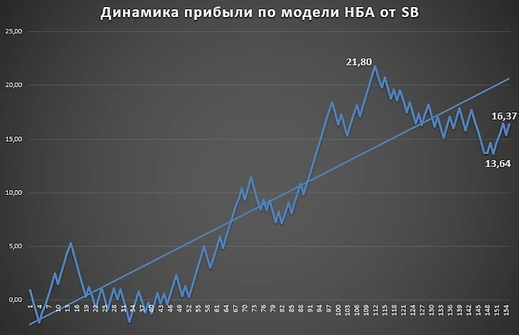 Подробные текущие итоги модели НБА: 88+1=66-, 🔥ROI +10,6% и другие показатели