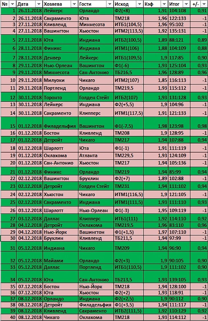 Больше 16 номиналов прибыли (без пропущенных - около 14) менее чем за месяц и ROI выше 10% на одном из самых крупных рынков (форы и тоталы НБА с миллионными лимитами) - это шикарный показатель! Однако не стоит ждать, что так будет всегда, дисперсию никто не отменял. У модели ещё не было провалов, зато были дни по 10 из 11 и 8 из 10. На длинной дистанции могут быть обратные примеры. Буду рад, если к концу теста ROI будет выше +3%. Если больше +5%, то вообще бомба. Даже если будет любой показатель выше нуля, признаю тест успешным в контексте того, что основной задачей является огранка модели для прибыльной её дистанционной работы (т.е. выявление ошибок даже более важно, чем итоговый результат, хотя и он приятен).