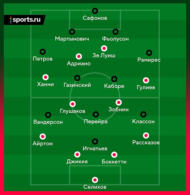 На сборах Кононов наигрывал 4-4-2 и 4-2-3-1, но скорее всего тренер оставит расстановку, которая давала качество в атаке поздней осенью: Ханни на левом фланге, Луис Адриано и Зе Луиш – впереди. Не очень понятно, кого Кононов выберет на правый край: например, Гулиев там появлялся в матчах с «Оренбургом» и «Шерифом», но против молдаван вышедший на замену Ломовицкий поучаствовал в голевой атаке.