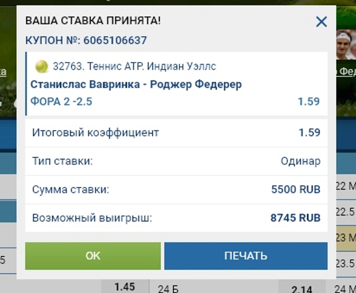 Наиболее актуальна она будет, если пройдет сегодняшняя ставка на теннис, третий раунд Мастерса в Индиан-Уэллсе и легендарное противостояние Федерер - Вавринка.