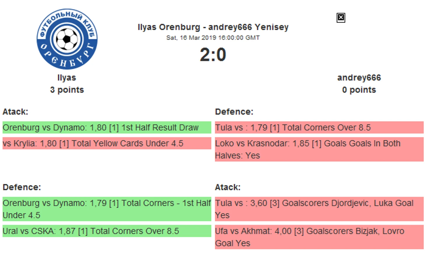 Такие же планы думаю и Оренбурга -2ой команды Ильяса. Победил чемпиона - надо развивать успех! Его соперником в ближайшем утре станет Енисей andrey666. В минувшем туре у него «не полетело» - бывает.. Ждем следующих попыток!