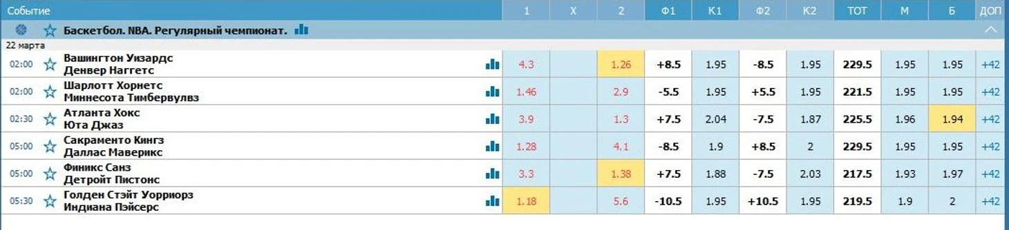 02:30 Атланта - Юта ТБ (227.5) кф. 1.97 +++