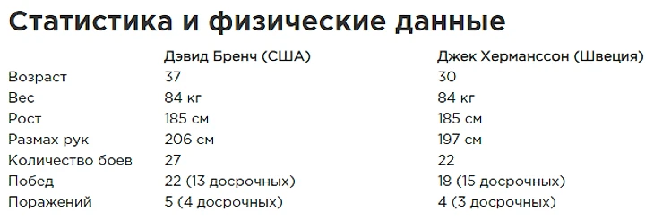 Имя шведского бойца Херманссона давно на слуху у искушенных фанатов смешанных единоборств. В промоушене UFC Джек провел семь поединков, проиграв лишь Сезару Феррейре (болевым приемом) и Тьяго Сантосу (техническим нокаутом). Два предыдущих боя, проведенные в 2018 году, Херманссон уверенно выиграл – у Талеса Лейтеса и Джеральда Миршерта. Чтобы подняться в рейтинге средневесов еще выше, ему необходим «скальп» Дэвида Бренча. Швед обладает хорошей ударной техникой, часто побеждает нокаутами.