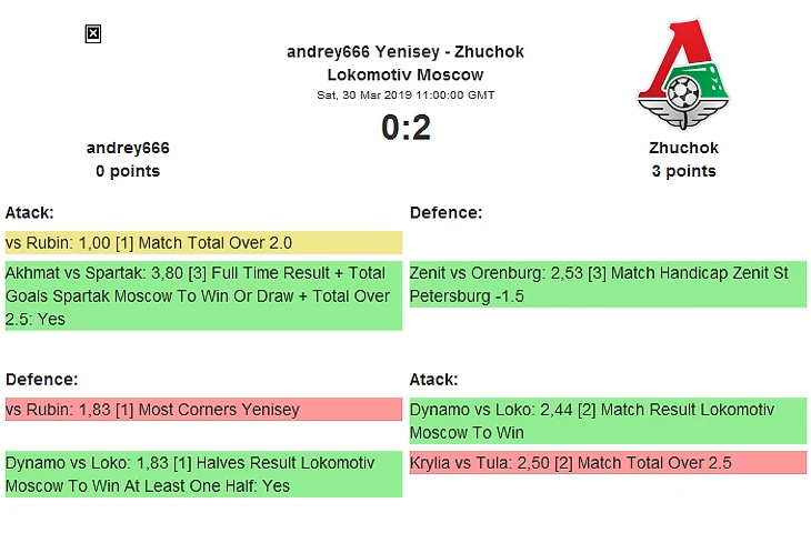 Во 2 туре он победил Енисей Andrey666, у которого пока явно не идет игра, и с 6 очками возвглавил таблицу. Помогла ему в этом и вторая своя команда – Рубин, остановившая Локомотив Zhuchok в Казани.
