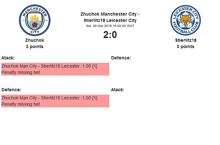 Manchester City Zhuchok попытается остановить начавший побеждать Leicester City Stierlitz18 и продолжить гонку за лидером. Удастся ли ему это ? Скоро узнаем.